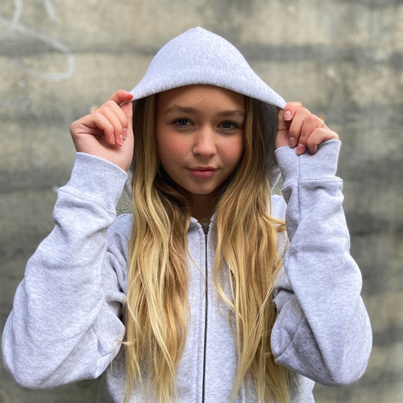 En rigtig fin hoodie med zip passer til vores sweatpants der også er i classic-stof