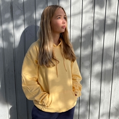 Denne hoodie er med ribkanter i talje og på ærmer i bomuld/lycra. Dobbeltlags-hætte med farvet snoretræk samt kængurulomme foran. Super gode til f.eks. efterskolelivet